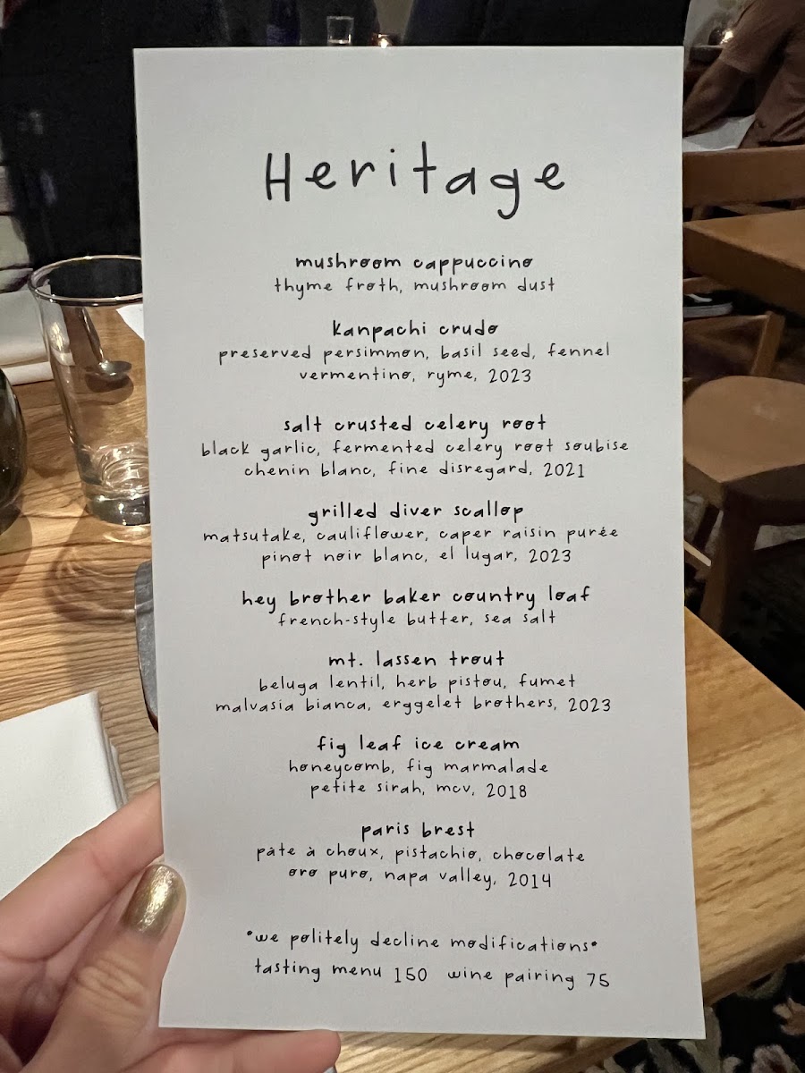 Introducing Heritage - Long Beach, a culinary gem nestled in a tranquil neighborhood of Long Beach, California. This Michelin-starred establishment offers a thoughtfully curated tasting menu that showcases seasonal ingredients and creative flavor combinations. Guests can indulge in exquisite dishes like the Mushroom Cappuccino, followed by the outstanding Diver Scallops paired with celery root and hazelnut. The menu evolves with the seasons, ensuring freshness and innovation in every visit.